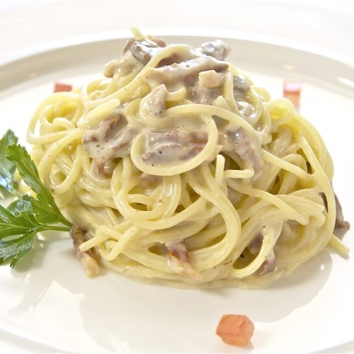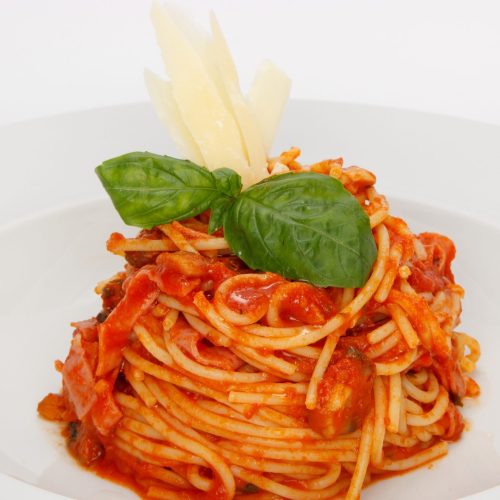 Paste (Conține Gluten) – 180g, Mix de fructe de mare (Conține Crustacee, Pește, Moluște)* – 60g, Branza Grana Padano (Conține